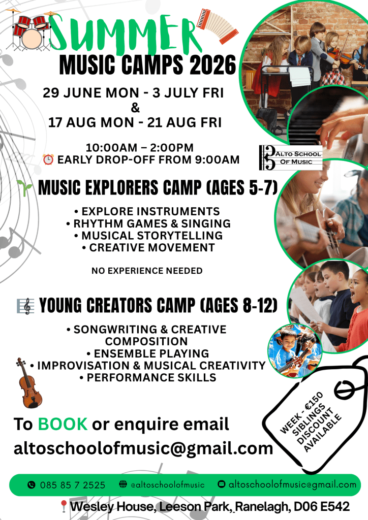 Join our camp series for a week full of music! To book email altoschoolofmusic@gmail.com or text 085 85 7 2525 (WhatsApp)