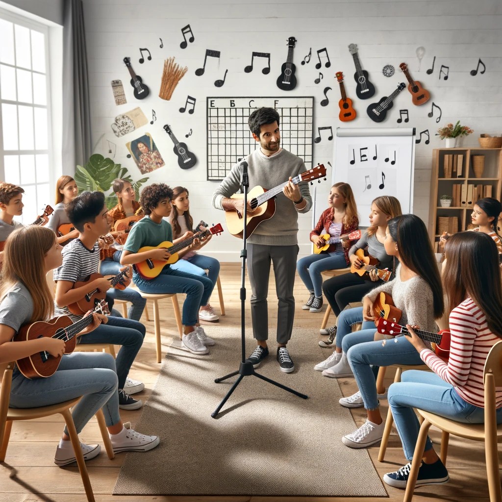 Our Group Ukulele Classes offer a dynamic and well-rounded musical experience for children. In addition to learning how to play the ukulele, students engage in sol-fa singing to improve their pitch and melody recognition, work on rhythm development through interactive activities, and receive guidance in performance preparation to build confidence and stage presence. It’s a fun and supportive environment where kids can learn music alongside their friends while developing key musical skills.
